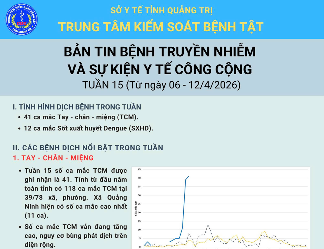 Bản tin bệnh truyền nhiễm và sự kiện y tế công cộng tuần 15 (Từ ngày 06 - 12/4/2026)