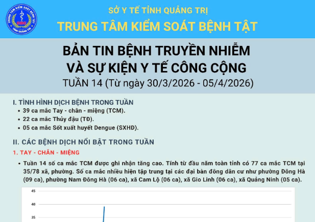 Bản tin bệnh truyền nhiễm và sự kiện y tế công cộng tuần 14 (từ ngày 30/3 - 05/4/2026)